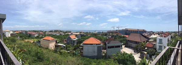 Eftermiddagen spenderade vi med en promenad ner till stranden och balinesisk helkroppsmassage vilket givetvis var underbart efter en så pass fysisk förmiddag. Lite weird dock med tv-spelsmusik när man får massage och vi var riktigt kladdiga efteråt. Middagen spenderade vi på takterrassen på vårt tillfälliga hotell med en galet fin utsikt över taken, alla gator, gränder och havet.