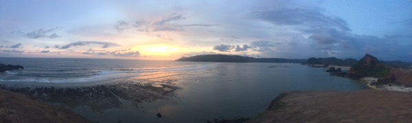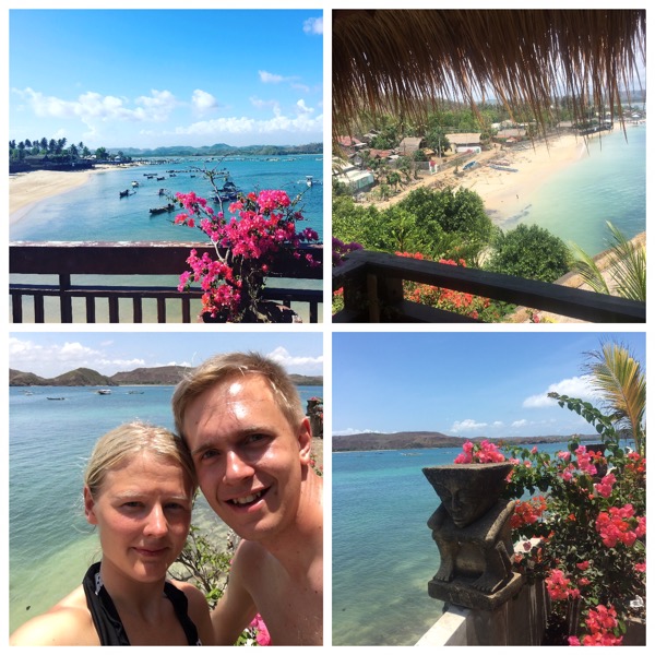 Tillsammans med vår holländska surfguide reste vi tidigt från Cangu och tåg en båt från östra Bali till ön Lombok. Utöver mig och Peder är det ett par från Australien, ett från Holland och två ensam-resande tjejer från England och USA. Båten över tog nästan två timmar och efter det åkte vi bil i ytterligare 2 timmar för att komma till Lomboks södra delar där vårt hotell/camp låg perfekt placerat i en klippa intill stranden i en väldigt liten by med kanske max 3 st mindre hotell/b&b och en riktigt skumpig grusväg som huvudgata. Det blev en lång dag men vi hann med en surflektion i solnedgången på ett rev precis utanför. Vackert och mysigt eftersom vi var helt ensamma i vågorna. Våra balinesiska surfinstruktörer är dock alltid på plats i vattnet och hjälper, tipsar samt tar oss till och från där vi ska vara. Det gick ändå okej för oss men vi sov väldigt gott sedan. Efter att vi fått byta rum dock, då vårt saknade el, dörrnyckel och toaletten fungerade inte. Det var ändå ett mysigt och välskött ställe men det märktes att vi inte var på centrala Bali längre och att högsäsongen var över då det fanns gott om lediga rum. Sängen var väldigt fräsch och fin men vattentrycket i ledningen var minst sagt bristfällig så vi duschade hos grannparet, vilket gick utmärkt bra.