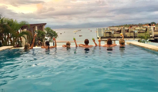 Vi åt en god middag (med ovanligt stora portioner) på en finare restaurang med liveband och avslutade dagen med drinkar på stranden vid en liten bar med discoljus och DJ. Idag började vi med en privat morgonbåt som tog oss ut till en djup vik där vi snorklade med mantor, riktigt fina djur. Efteråt en frukost och nu väntar dagens surflektion men nu korallrev under istället för sjögräsrevet på Lombok så vi ska tydligen ha speciella skor på oss. Och ja, om någon undrar över vädret så är det sol och 30 grader, inga konstigheter helt enkelt. Kan inte klaga på något mer än kanske att axlarna o armarna börjar ta stryk av paddlingen (som trots allt är en stor del av surfandet när man är totala nybörjare som vi.