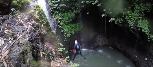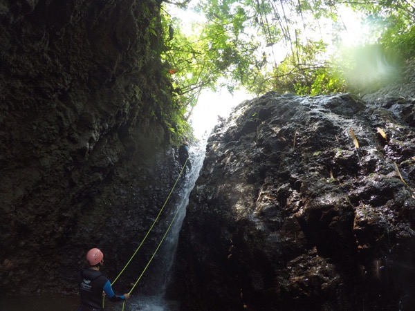 Dagen efter åkte vi långt upp i bergen på canyoning, vilket i vårt fall innebar repellering i upp till 25 m höga vattenfall, höga hopp, zipline, klättring och rutchkana i en ravin/dalgång under cirka 5h.