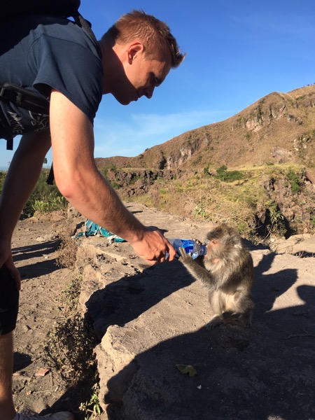 På vägen ner träffade vi på apor som drack vatten ur våra flaskor och försökte sno eller tigga till sig allt de kom åt.