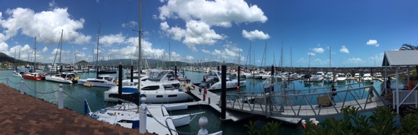När vi kom fram med bussen till Airlie beach vid 19-tiden var det 15 min att gå till vårt hostel (Nomads) som ligger perfekt placerat på huvudgatan intill havet. Vi sov som stockar efter en god lax-middag på huvudgatan där vi fick vänta på ett bortglömt (men senare gratis) och mycket efterlängtat vitlöksbröd. En intressant efterrätt..