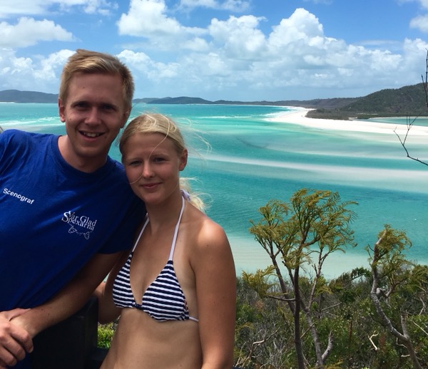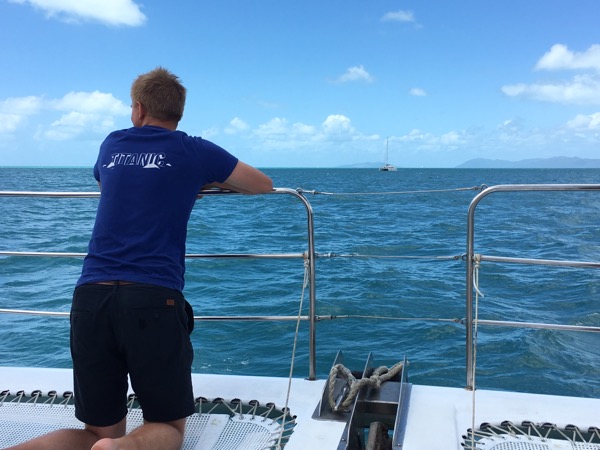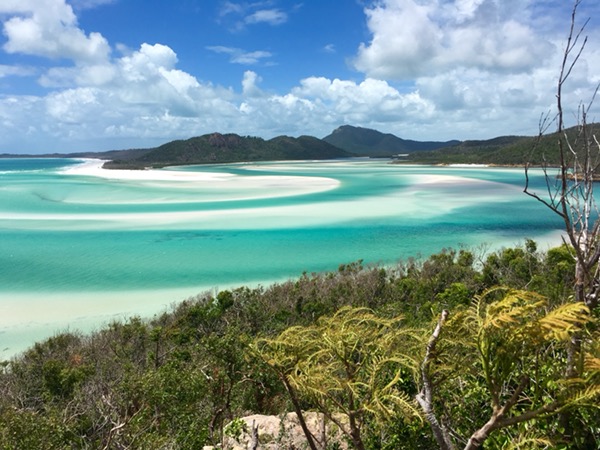 Ett helt ok dyk men såklart inte i närheten av barriärrevet utanför Cairns. Dessutom friflödade min regulator delvis till och från under vattnet vilket kändes lite obehagligt men snart var vi tillbaka på båten för lite fika som de andra snorklarna typiskt nog hade ätit upp. Middagen bestående av bland annat grillad lycklig var dock sjukt bra och vi sov som stockar i vår egen lilla dubbelbädds-hytt. Efter en tidig frukost på min 30-årsdag åkte vi vidare mot airlie beach stora turistmagnet – whitehaven beach. Hela ön som heter Whitsundays island är obebodd och full av tät vegetation. Utsiktsplatsen över den vidsträckta sandstranden och lågvattnet var galet vacker.