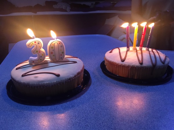 Senare på dagen flyttade vi oss och de andra fick snorkla en andra gång medan jag passade på att duscha och tvätta lite. Av någon anledning var jag inte sugen på att snorkla och utav det Peder och de andra berättade ångrar jag det inte. Tyvärr ganska dålig sikt igen, man blir ju helt klart bortskämd efter de utmärkta förhållandena på barriärrevet. Till middag var det grill med både lax och kött och mycket annat. Fantastiskt bra och genomtänkt mat för att vara på en båt och endast 2 besättningsmän. Efter middagen berättade kaptenen var vi va och en hel del historia och fakta kring öarna runtomkring oss och sedan överraskade de mig och ett annat ”födelsedagsbarn” på båten med kaktårta och ljus.