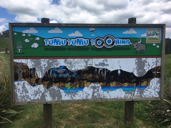 Idag var det fullspäckat på schemat. Vi åkte tidigt från vårt djungel-hostel och några timmar senare stannade vi bland de gröna kullarna för Black Water rafting vilket i det här fallet innebär att vi tillsammans med 2 guider och 6 andra från vår nuvarande bussgrupp klättrade ner i en av de många grottorna för att krypa, klättra, simma och åla sig igenom trånga gångar och stora grottöppningar fyllda med lysmaskar. Utöver det fick vi ligga på rygg och mage i stora simringar för att dels kunna njuta av ”stjärnhimlen” som lysmaskarna skapar när vi släckte lamporna. Men också för att slippa slå i huvudet när vi gled fram på vattnet i trånga gångar. (Vi fick inte ha vår Gopro-kamera eller någon annan kamera med oss tyvärr). Vissa delar av grottan bottnade vi inte i och vissa delar fick vi vada/kravla fram i ibland droppande stalagmiter och stalaktiter och fantastiska sand- och kalkstensformationer. Vid ett tillfälle behövde vi flyta o titta (stilla) upp i taket för att klämma oss förbi ett trångt utrymme, lite oväntat och helt klart inget för den klaustrofobiska. Vattnet var cirka 11 grader men vi hade våtdräkt så det var ok men på sluter var jag galet kall, speciellt eftersom vattnet ständigt rinner in i stövlarna där man bara hade tunna vanliga (numera lersunkiga) strumpor på sig. Lysmaskarna var dock oväntat vackra att titta på och lite roligare blev det ju när guiden berättar att det egentligen är maskarnas (eller snarare larvernas) avföring som lyser. Vi klarade oss oväntat nog från alla former av skador men jag blev lite orolig när det första som händer mig när jag klättrat ner och står där i totalmörker givetvis är att jag tappar en lins. Lyckligtvis tappade jag den inte utan fick mirakulöst på den igen till guidernas (och min egen) förvåning. Hela upplevelsen tog ca 3h och efteråt var vi både hungriga o trötta så när vi satt på bussen igen åt vi våra medhavda plättar med nutella – ett utmärkt val.