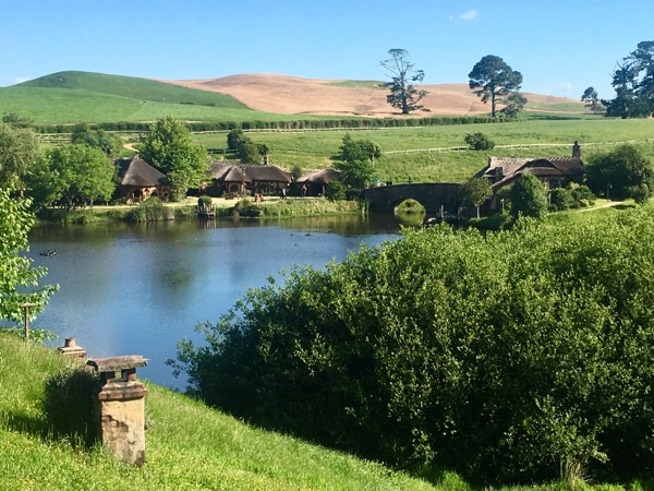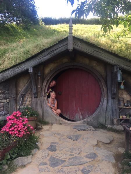 Någon timme senare var det äntligen dags för Hobbiton (inspelningsplats för Lord of the rings filmerna för mina ”sämre upplysta släktingar/vänner” – obs ett skämt). Vår guide visade oss runt bland 44 fantastiska och återskapade hobbithål bland de supergröna och frodiga kullarna med blommor, buskar, små inspelningsdetaljer och stora välmående träd. Och ja – jag fick se det fantastiskt maffiga ”festträdet”. Solen sken (skitvarmt) och det var en perfekt dag för Hobbiton, med många roliga detaljer och minnen från filmerna. Många foton blev det (se instagram) och man (läs jag) blev riktigt glad och nostalgisk av hela upplevelsen, även om det såklart var turistigt. Lite nörd-stolt blir man ju också när guiden frågar vilka som är riktiga fans och som därmed läst Silmarillion och det bara är jag som energiskt räcker upp handen och påpekar att jag läst den 2 gånger på 2 språk. Hur som två fantastiskt bra aktiviteter som jag gärna gjort igen.