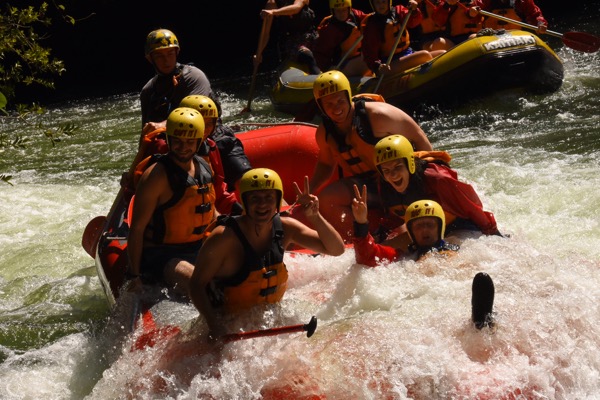 På ett sätt var det synd att vi inte kunde stanna längre i Rotorua eftersom det finns så mycket att se och göra. Tanken är att Stray ska vara en sorts hop on hop off buss men eftersom det är så mycket folk som reser var/är det nästan omöjligt att stanna en dag extra på de första ställen för då finns det inte plats på bussen förän 2 veckor senare. Det märks att vi inte är de enda som varken har den tiden eller för den delen heller pengarna att täcka det. Dagen för avfärd bokade vi dock in oss på river rafting (forsränning) eftersom det var så pass kul i Uganda.