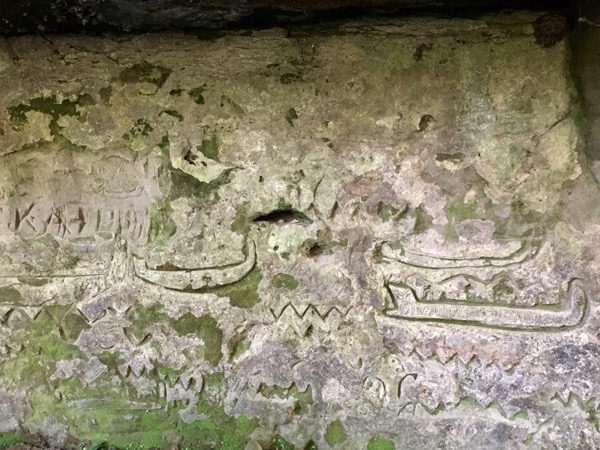 Däremot fick jag som enda person hänga utanför båten i vattnet medan vi åkte ner för en fors, det var spännande! Vår båt/grupp namngavs givetvis av guiden till Vikings eftersom vi var 3 av 6 svenskar… hursom, en bra och kul förmiddag som dock blev lite fördröjd pga förvirrade medresenärer så bussen fick åka tillbaka o hämta upp folk vilket innebar att vi inte hann äta lunch innan Stray-bussen skulle åka vidare. Våra nötter och powerbars var helt klart räddare i nöden. Under vägen vidare till kvällens boende vid Lake Aniwhenua stannade vi längs vägen och tittade på termiska kokande lerpölar men också på Nya Zeelands äldsta grottmålningar/inristningar.