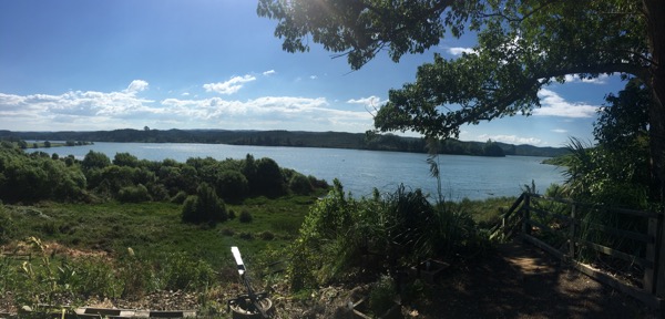Både där och längs med vägen berättade vår nya upplockade maori-guide om både skogen, naturen, historia och en del nutid medan vi passerade saker, bl.a. den (numera) mindre men till största delen maoribefolkade orten Marupara. Vårt boende låg mitt ute i ingenstans (inget wifi) med fantastisk utsikt intill sjön Aniwhenua.