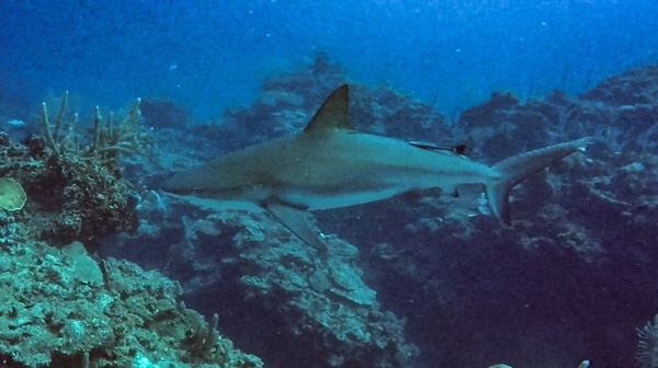 Djupast var vi på 29m och efter första dyket tog alla lunchpaus inne i San Pedro. En hamburgare på en restaurang på stranden och sedan var vi iväg igen. Det var väldigt skumpigt och mycket vågor där vi skulle hoppa i och upp ur båten så det gällde att ha tungan (och go pro kameran) rätt i mun. Andra dyket träffade vi även på två rejäla revhajar men de var inte lika trevliga och villiga att socialisera om man säger så.