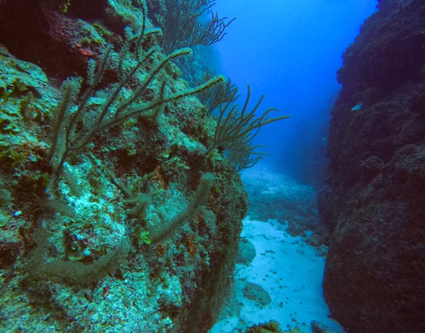 Efter intagen frukost åkte vi och 3 andra iväg för två dyk i närheten av San Pedro, ca 25 min båt bort. Vi visste inte riktigt vad vi skulle förvänta oss så det blev lyckligtvis en glad överraskning. Sikten var minst 20m, vattnet är mellan 27-30 grader varmt och solen sken hela dagen så inget att klaga på där. Vår utrustning funkade inledningsvis bra och vår guide var seriös och trevlig. Precis i slutet på sista dyket började Peders luft dock (med betoning på började dvs inget akut) ta slut, trots att mätaren visade att han skulle ha kvar en hel del. Troligen något knas med mätaren så på säkerhetsstoppet i slutet fick vi dela eftersom jag alltid har en hel del luft kvar. Inga konstigheter så men man blir ju alltid lite irriterad när man får hyra trasiga grejer. Bra övning i och för sig. Första dyket bestod mest av mjuka koraller och flera raviner man kunde simma igenom.