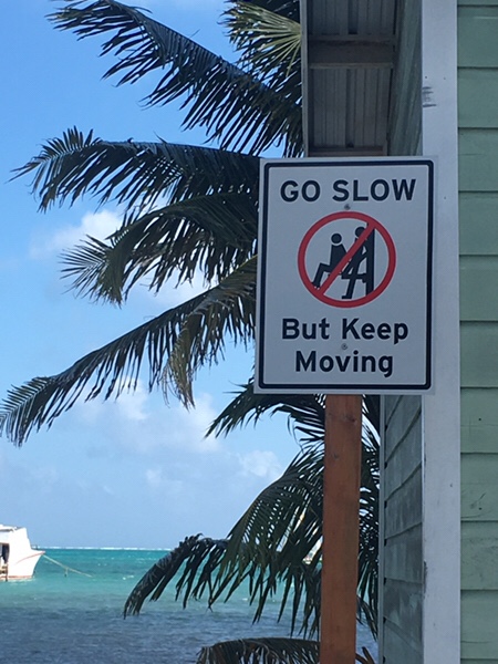 Vi besökte även den norra delen av ön ”the split” vilket idag är platsen där en orkan delade upp ön i två delar på 60-talet. Där har man nu anlagt en badplats och en (dyr) men välplacerad bar. Förövrigt spelar de flesta barer här reggae musik och flesta har mer eller mindre stora skyltar som säger ”Go slow”. Lite av det lokala mantrat här på ön. Känns väldigt avslappnat och semester på alla sätt faktiskt. Husen ör färgglada, vattnet turkost, solen skiner, alla gator är av sand, palmerna står uppradade och det lokala transportmedlet är antingen någon form av golfbil eller cykel. Det finns en bankomat på ön (och den funkar faktiskt) och maten är förhållandevis dyr men det finns många mysiga (och numera julpyntade ställen) att välja på.Stereotypen av mannen med rastaflätor som lyssnar på Bob Marley finns helt klart här. Turisterna är tydligen inte så många just nu vilket märks och det är lugnt, varmt och generellt allmänt asmysigt. Hade gärna haft några dagar till här. Från södra till norra änden går vi på ca 20 min.