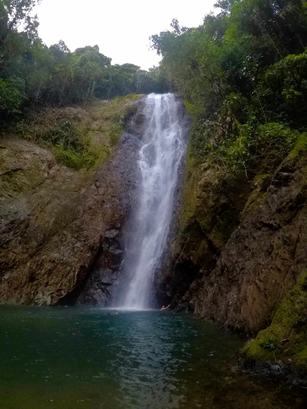 På vägen ner stannade vi för en simtur i ett vackert stort vattenfall, fortfarande bara jag och Peder. Två killar från byn följde med i båten och på vägen ner mot stan visade de hur man numera också transporterade sig, nämligen med rumpan i en luftfylld innerslang/badring.