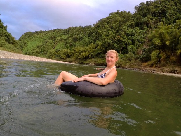 De små forsarna tog oss nedströms i våra badringar och på slutet hängde vi efter långbåten innan det mörknade och vi fick åka båt sista biten till en liten brygga där en Maria och bilen väntade för att ta oss tillbaka till hotellet. Vanligtvis brukade man inte hinna ett besök i byn men eftersom det bara var vi två fixade dem en fulltur på en eftermiddag och först vid 7-tiden var vi tillbaka. Helt slut efter 2 hajdyk och en eftermiddag full av intryck och nya insikter. Tror nog att vi var blöta majoriteten av den dagen och trots att solen inte var framme var det absolut tillräckligt varmt i både lyften och vattnet. Dagen avslutades med 2 stora burgare vid hotellet sedan slocknade vi snabbt och sov väldigt väldigt gott och mycket.