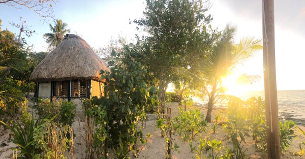 Ön är den minsts vi varit på hittills och är en platt sandö omgiven av hav, riktigt fin. Vi blev snabbt på riktigt gott humör när vi konstaterade att vår stuga låg en bra bit från restaurangen (hördes inte ett ljud) och precis vid stranden.