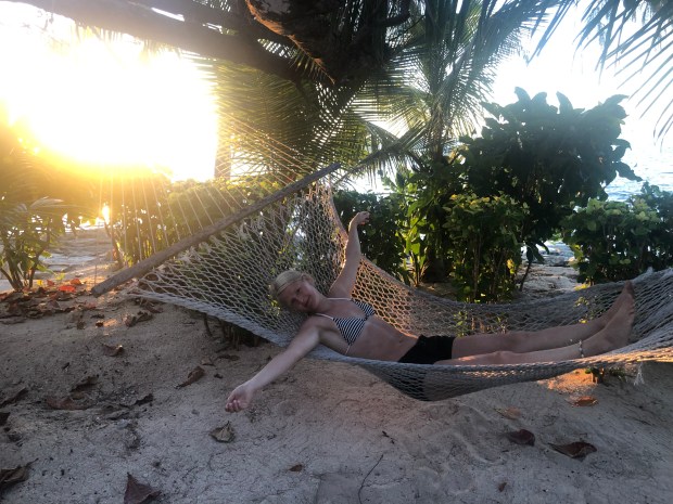 Dessutom var stugan enorm (jämfört med de tidigare öarna) hade AC och takfläkt, egen stor altan med varsina solstolar direkt mot havet, en hängmatta i skuggan under palmerna OCH det gick att låsa dörren. Det har det inte gått att göra tidigare förutom på det allra första boendet i Pacific Harbour. Här finns också ett struligt men existerande wi-fi (isch) och en massa aktiviteter att göra.