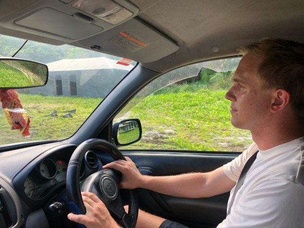 Vi hyr en fyrhjulsdriven liten jeep och från vårt boende upp till huvudvägen (som saknar vägskyltar, markeringar eller hastighetsbegränsning) via den gropiga och steniga mindre vägen tar det ca 20 min. Huvudvägen är alltid smal och byarna ligger tätt intill vägen och man får se upp för både grisar, barn, kokosnötter, rullande apelsiner, lösa hundar, kycklingar mm. Fantastiskt vacker natur och många fina trädgårdar och prydliga odlingar trots ibland ganska slitna och medtagna hus.