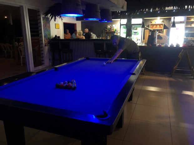 Lyckligtvis hade den öppet och vi kunde tanka fullt, sedan åkte vi förbi en marinskyddad vik där det skulle finnas stora musslor att kika på. Något vi iof sett mycket av förr. Men det var stängt (eller snarare inte tillåtet) att bada där på söndagar. Men det var en fin vik, men inte lika fin väg därifrån, men vår lilla jeep tuffade obehindrat vidare hem igen. Där tog vi ett dopp och en dusch (notera mycket bad här). Sedan åt vi middag, spelade lite biljard och gick o la oss tidigt eftersom vi hade bokat 2 dyk dagen efter och vägen dit tar en stund.