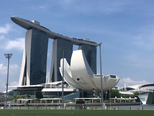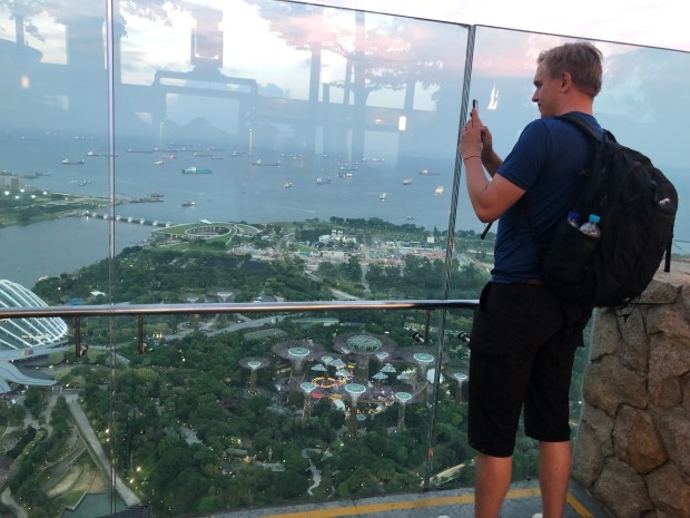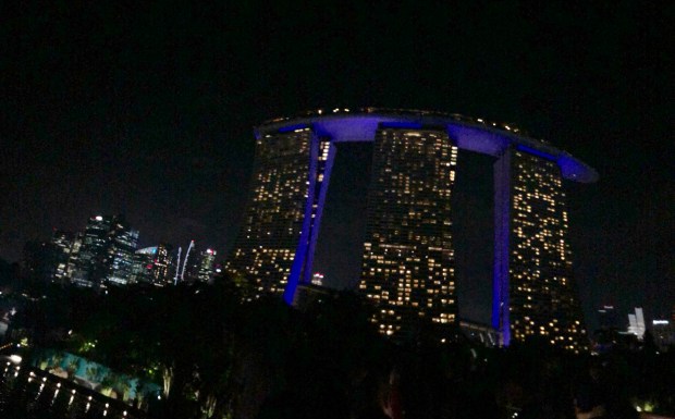 Maten är kanske inte den vackraste att se på men den smakar desto mer. Billigt var det också, speciellt med de traditionella restaurangerna precis utanför. Efteråt hängde vi på ett trevligt australienskt äldre par som gått eftermiddagen med oss för de bodde på det lyxiga 57 våningar höga Marina Bay Sands som består av tre gigantiska hotelldelar med en gigantisk båt (restaurang, bar och enormt poolområde) ovanpå de 3 hotellsektionerna. Större än det ser ut…